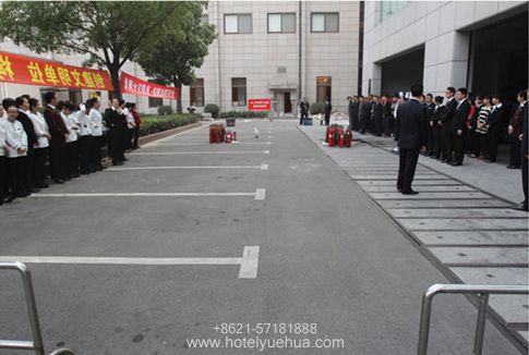 为进一步提高悦华大酒店全体员工的消防安全意识,消除火灾安全隐患,2012年10月29日上午9:00--10:00、下午2:00--3:00,酒店在保安部的组织策划下举行了一年一度的消防实地演习,区消防总队参谋沈智伟、分管民警腾金华、酒店陈总以及王总参加指导了本次演习。