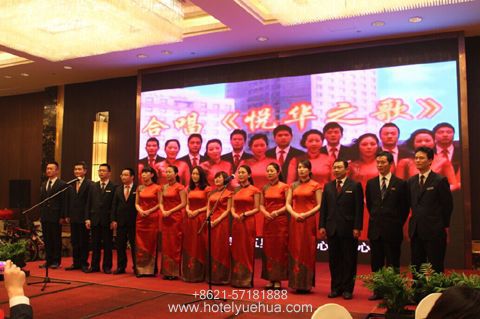 2015年3月9日,伴随着热烈的掌声,上海悦华大酒店2015年新春联欢晚会在酒店三楼牡丹厅隆重举行。晚会上,悦华大酒店总经理胥新民先生总结14年的工作和对15年的蓝图展望,并表彰了2014年酒店各部门优秀员工。