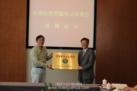 2012年,奉贤区消保委在南桥地区开展了首届“消费服务示范单位”评选活动,我酒店非常荣幸被授予奉贤区2012年度“消费服务示范单位”称号。