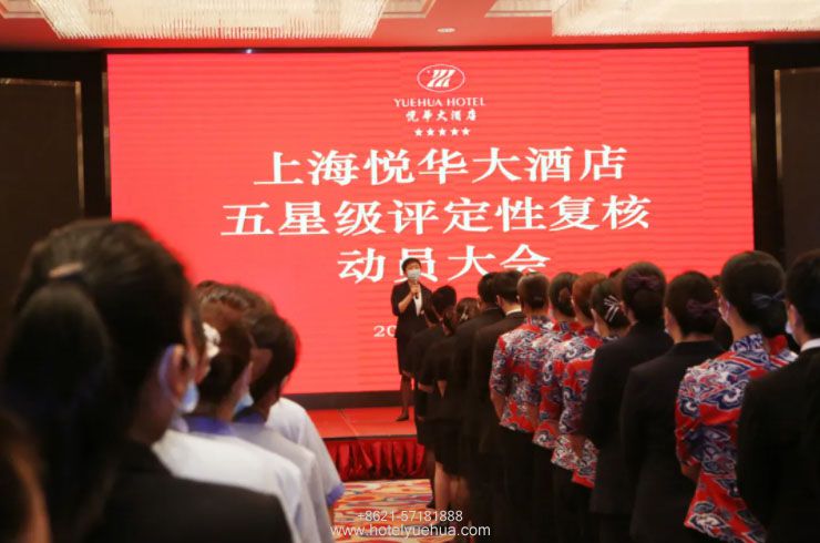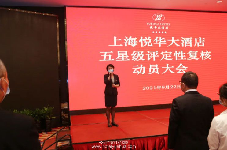 会上,人力资源部经理仰银妹女士表示上海悦华大酒店作为奉贤最早开业的五星级酒店,将参照“旅游饭店星级评定标准”,认真落实,逐项整改,查漏补缺,进一步加以完善。坚信在上级领导的关心支持下,在总经理的带领下,以及全体员工的共同努力下上海悦华大酒店定能顺利通过五星级评定性复核。