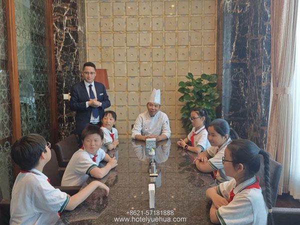上海悦华大酒店是首届“上海市文明旅游示范单位”,也是奉贤首批入选“五星级”的酒店。步入悦华大堂,队员们被酒店大气、整洁、温馨的环境所吸引,惊叹的背后是每一位劳动者的辛勤付出。随后,队员们怀着崇敬与好奇的心情,与荣获2025年“南桥工匠”称号的酒店厨师长—童旭明叔叔进行了面对面的交流。